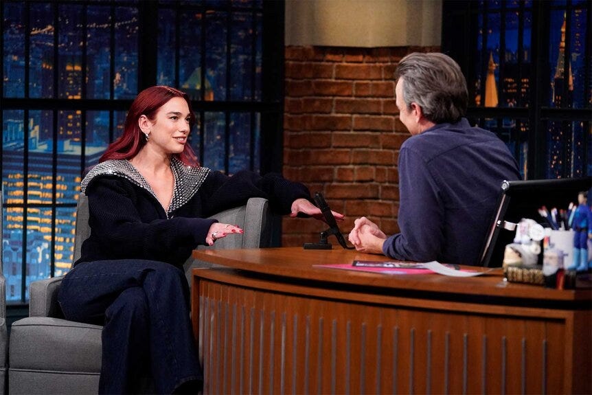 Of course, I know late-night talk shows are meticulously manufactured and pre-planned. But somehow, watching a conversation unfold in the confines of a studio set with giant cameras, knowing that the magic of editing can always salvage any mishaps, is strangely comforting. The idea of a pre-planned interaction that happens so smoothly is a romantic one in my eyes (Yes, I have watched The Rehearsal already).
